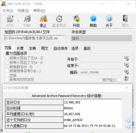 m?s?_?tt4?k! - 利用ARCHPR掩码攻击获取密码