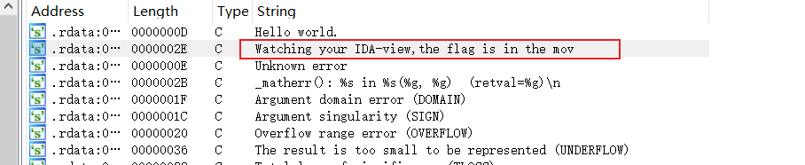 - 拖到IDA反编译,SHIFT+F12查看字符串
