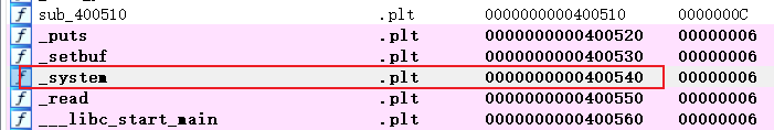 _system()地址0x400540 - 因为传入一个参数,所以需要知道rdi地址,利用