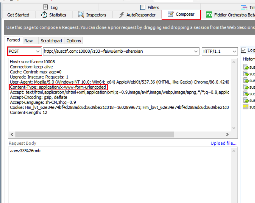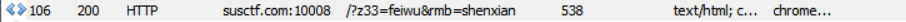 http://susctf.com:10008/?z33=feiwu&rmb=shenxian,双击新出现的结果复制get请求内容