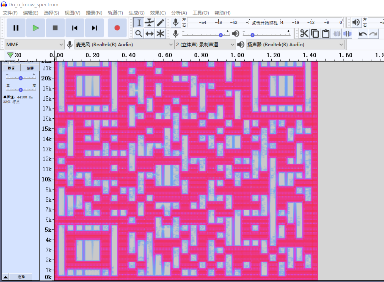 LetUsdanCe - 得到音频文件Do_u_know_spectrum.wav,用Audacity打开,并查看频谱图有: