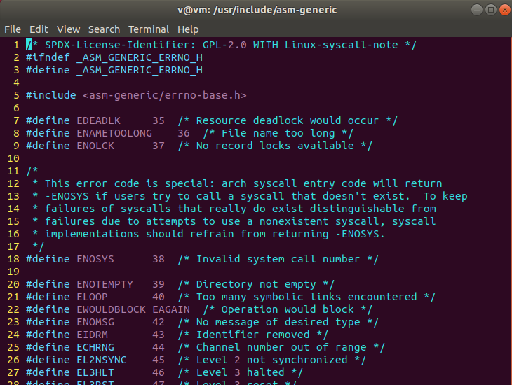 答:whereis errno.h查看位置得/usr/include/errno.h