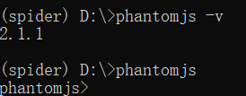 - 这里我们选择的是后者,然后在该虚拟环境命令行输入phantomjs即可进入Phantomjs
