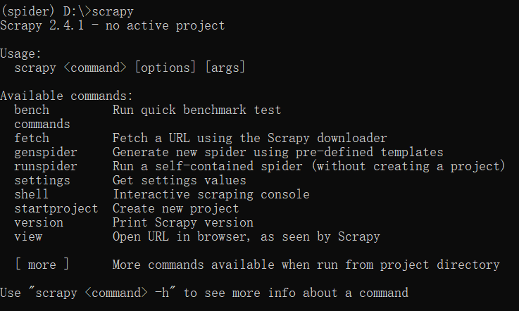 conda install Scrapy- 测试:在命令行输入