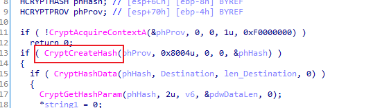 - 进入这个函数,首先发现了关键的hash操作,查一下这个函数 CryptCreateHash