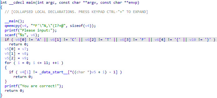 1 | int __cdecl main(int argc, const char **argv, const char **envp) |