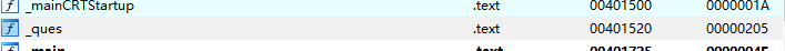 - 拉到IDA,没有找打main函数中有什么关键信息,最后有个ques函数比较可疑,没有被调用过,其地址为0x401520