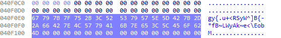 40F040及40F0E0处的数据情况如下,两者异或再索引回原来的值即为flag,后者可以用hex视图复制