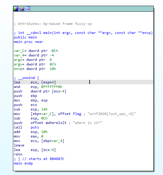 exeinfo PE查到UPX壳,用UPX工具脱壳后拿到IDA