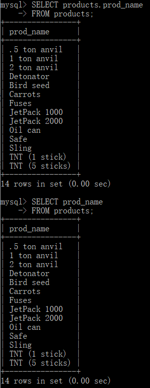 注意:不能部分使用 DISTINCT。 如果有 SELECT DISTINCT vend_id,prod_price FROM products; 那么只有指定的两个列的值都不相同时,才会被检索