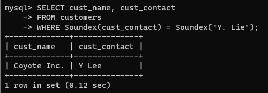 - Sounden() 可以比较字符串发音,找到发音类似的结果