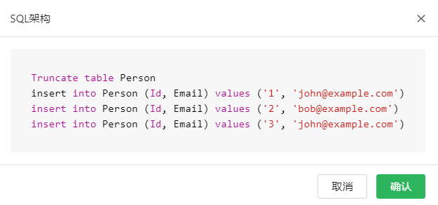 1 | CREATE TABLE Person(Id int,Email char(50),PRIMARY KEY(Id))ENGINE=InnoDB; |