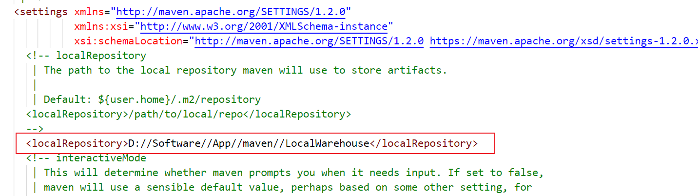 1 | <localRepository>D://Software//App//maven//LocalWarehouse</localRepository> |