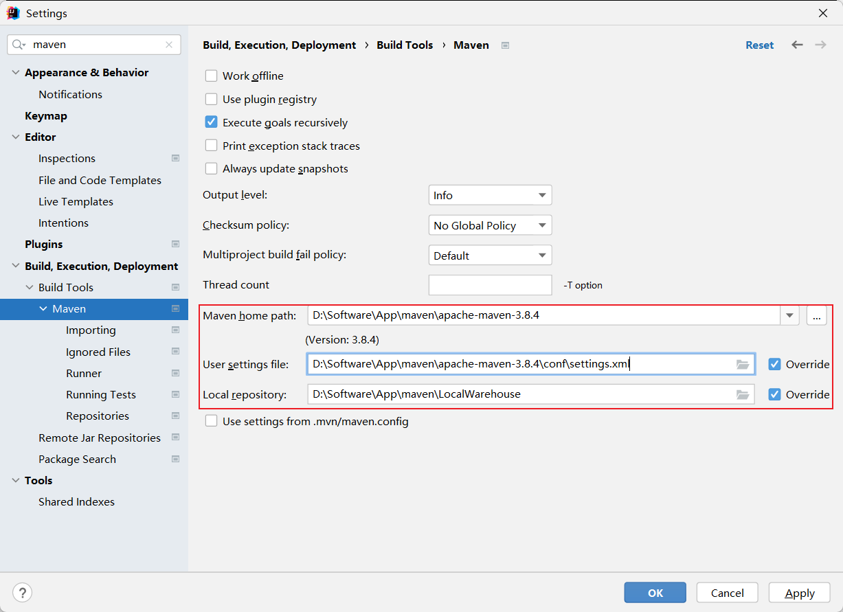 修改文件D:\Software\App\maven\apache-maven-3.8.4\conf\settings.xml
